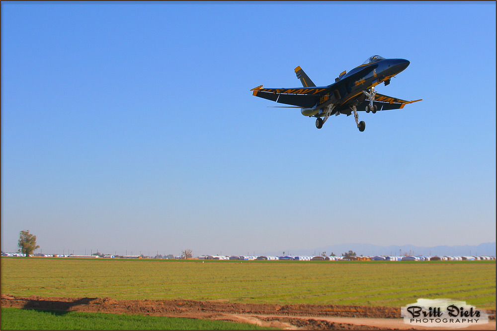 In the days leading up to the NAF El Centro Airshow each year, the USN Blue Angels and other Airshow performers fit in as much practice as possible the few days before. While the public is not allowed inside the base during the practice shows, it's become a tradition for many to watch and photograph the performers from outside the base.