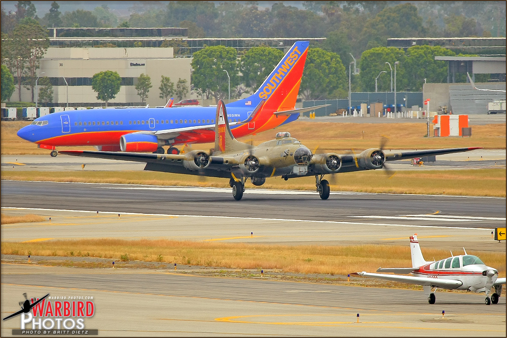 The Collings Foundation's Boeing B-17G Flying Fortress 'Nine O Nine', Consolidated B-24J Liberator 'Witchcraft', and North American TP-51C Mustang 'Betty Jane' make a special visit to the Lyon Air Museum at John Wayne Airport on their Wings of Freedom Tour across America.