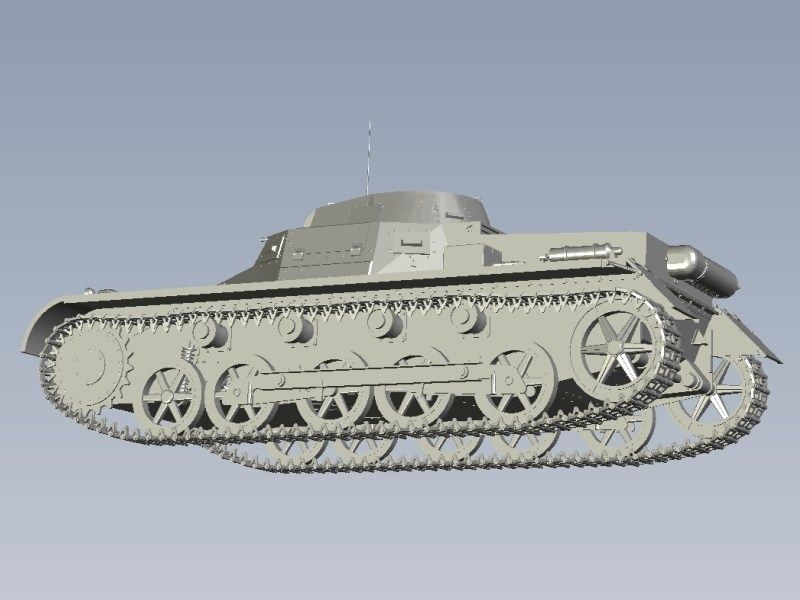 On the other hand, if you like to stick on 1/18 scale instead of 1/16, I could upload it on Shapeways and purchase it from there. I've already CAD designed the Panzer PzKpfw I SdKfz 101, the PzKpfw II and the PzKpfw III SdKfz 141 few years before, as custom work for a European company specialized on resin model kits production under 1/35 scale and I guess it would not be a big problem to re-scale it under 1/18 or 1/16, but I think that due the high cost of FUD plastic matterial (which is best for miniatures & models) the production cost would not be as low as buying the forementioned 1/16 kit (which I think is an RC one). Have a look some screenshots of the CAD model by clicking:
